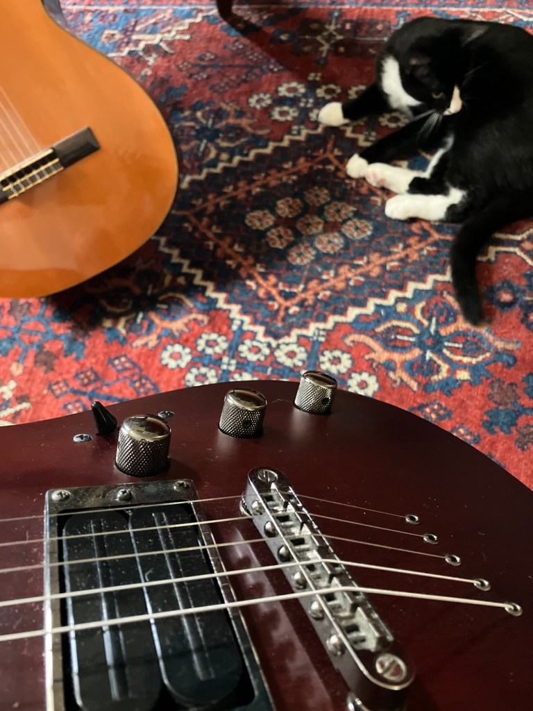 I like to learn about the repair and care of guitars, ever since I signed up for Fender Play, a gift from Mom. My first electric is an orange Squier Bullet Special, the first strat I have owned, and the first one I tried learning to maintain. I started with some classes from Darrell Braun’s guitar channel on YouTube, figuring out how to sand rough necks, adjust string trees, and more. It was a little nerve wrecking at first but I got braver.