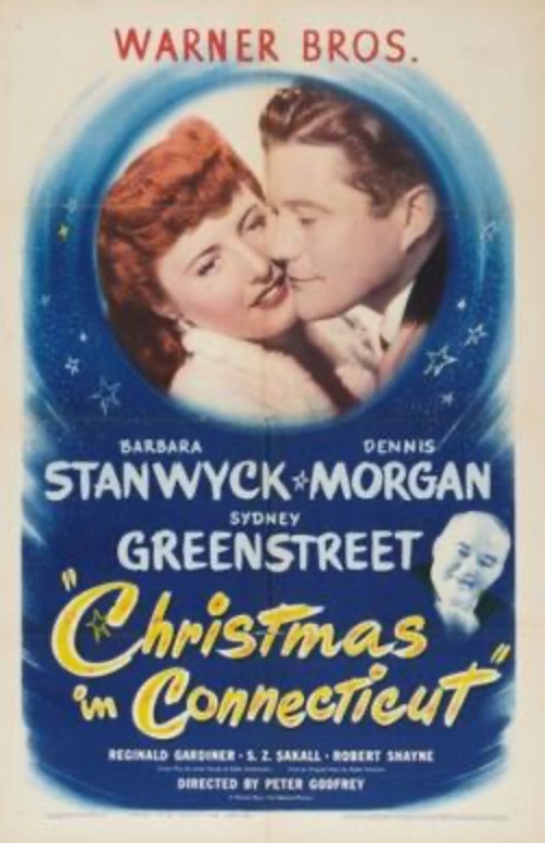 Christmas in Connecticut is a 1945 American Christmas comedy film about an unmarried city magazine writer who pretends to be a farm wife and mother and then falls in love with a returning war hero. The film was directed by English director Peter Godfrey and stars Barbara Stanwyck, Dennis Morgan and Sydney Greenstreet.