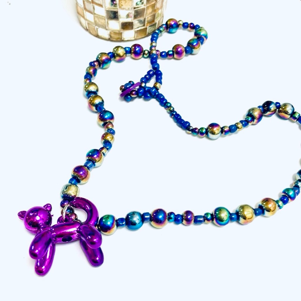 Purple Iridescent Toyland Balloon Kitty Cat Necklace Purple Toyland kitty cat balloon necklace with a purple button clasp, kitty focal and glamorous iridescent oil slick beads. Puurple Puurfection for your office parties. $25 Purchase Now Type your email… Subscribe Facebook WordPress Twitter Instagram Threads X YouTube LinkedIn