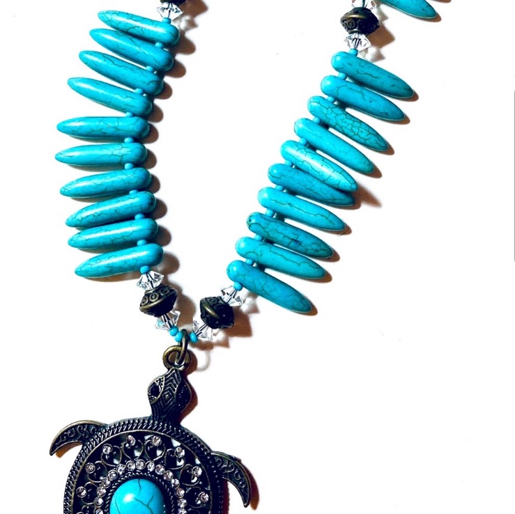 Turtle Takes Tahiti Charmingly exotic and uniquely handmade. A rhinestoned turtle is suspended from a dagger design with simple clear Swarovski crystals and a bit of gold embellishment. Vintaj brand swirl toggle clasp for a complete ending.18.5″ in length.Turtle measures 2″ x 1″ Purchase Now Type your email… Subscribe Facebook WordPress Twitter Instagram Threads X YouTube LinkedIn McGlamorous Designs Dance . Design . Glamour . Get in Touch Contact Us Who We Are AboutReturn Policy Follow Us FacebookTwitterInstagram Proudly Powered by WordPress